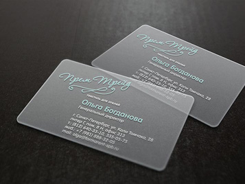 Изготовление визиток на темных и прозрачных бумагах и пластиках.