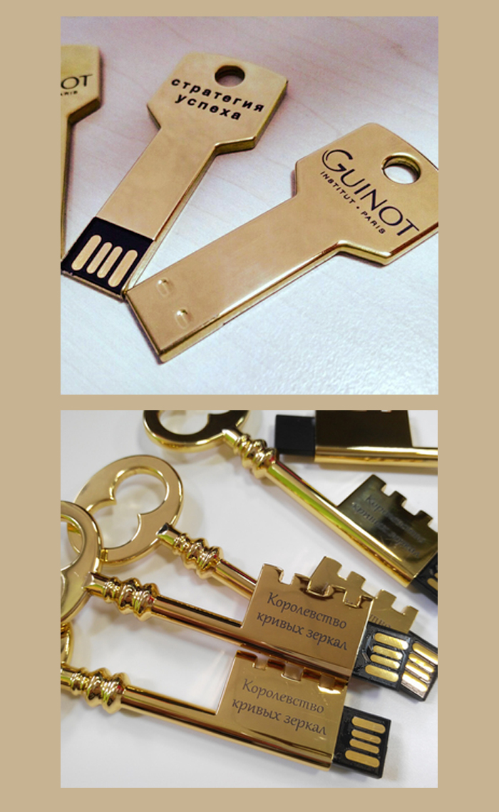 Нанесение логотипа на флешки возможно методом гравировки, в том числе с чернением, или тампопечатью, а также полноцветное устойчивое нанесение.