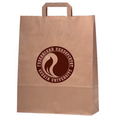 3. Крафт пакеты белые и бежевые с логотипом с плоскими или кручеными ручками.