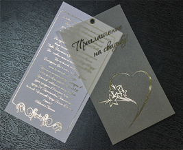 Возможно изготовление таких приглашений с объемной фольгой.