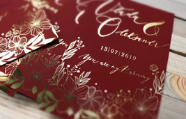 Возможно изготовление таких приглашений с объемной фольгой.